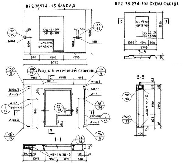 НР2-38.27.4-1бл Наружная стеновая панель рядовая по Серии 1.132-1.