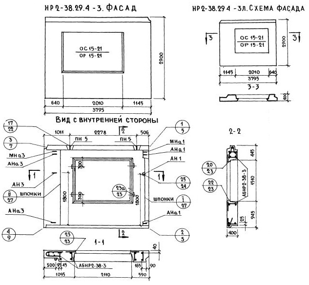 НР2-38.29.4-3 Наружная стеновая панель рядовая по Серии 1.132-1.