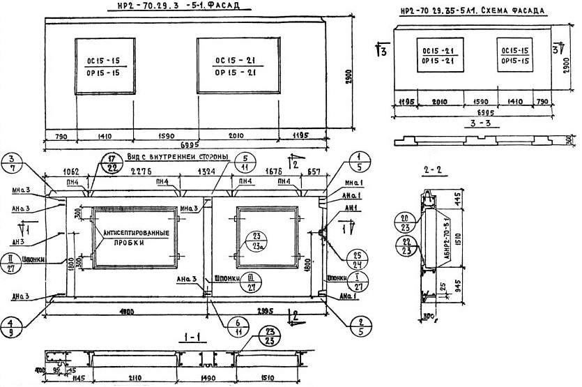 НР2-70.29.3-5-1   Наружная стеновая панель рядовая по Серии 1.132-1.