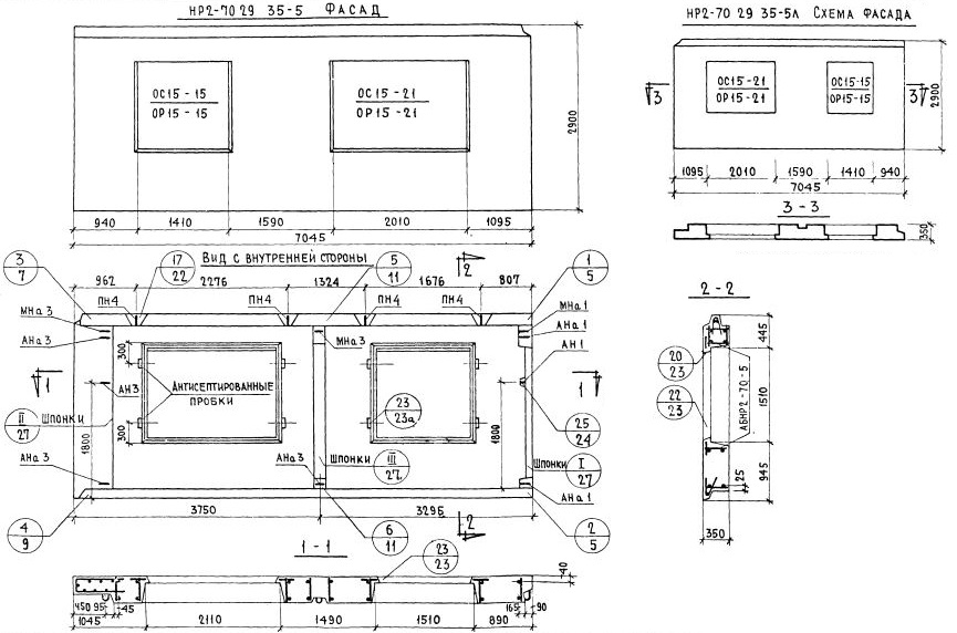 НР2-70.29.35-5   Наружная стеновая панель рядовая по Серии 1.132-1.