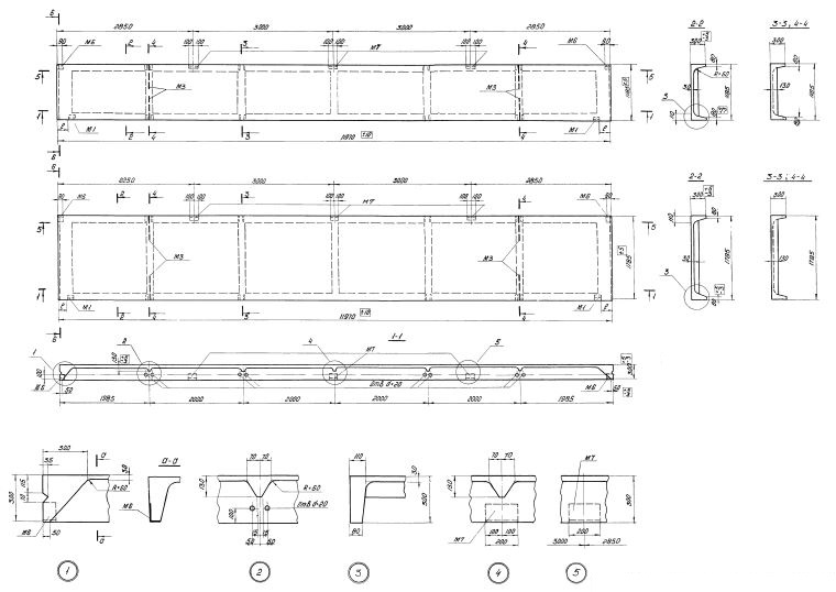 ПСЛ п-5-1-1,2-12 Подкарнизные рядовые панели при привязках продольной стены "0" и "250".