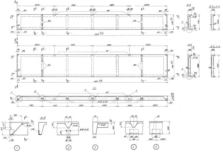 ПСЛ в-6-1-1,8-12 Подкарнизные панели-перемычки при привязках продольной стены "0" и "250".