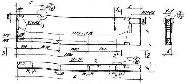 ПС 650.12.25-п-92 Парапетная панель-перемычка при простенках длиной 1,5м для углов и температурных швов.